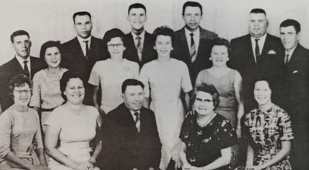 All smiles at the festive hall. Art and Yvonne’s FamilyLeonard (Len), Henry, Albert, Rene, Paul, Laurent (Frenchy), Judith, Mariette, Lea, Dora, Roland (Rollie), Yvette, Arthur, Yvonne, Aline (Stretch)Blanchette Family